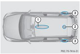 [1] Véhicules équipés d'un toit ouvrant panoramique : zone non autorisée.